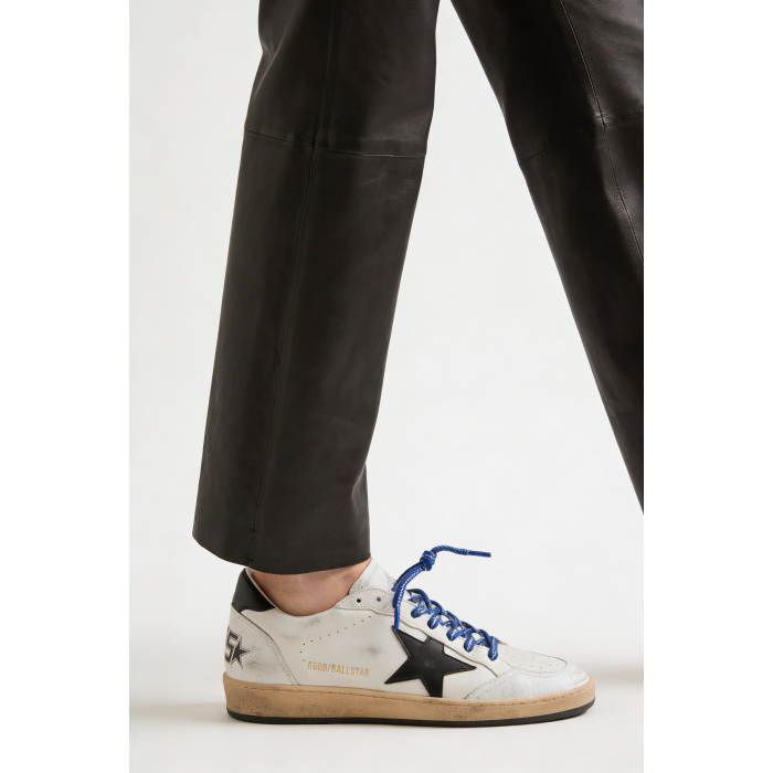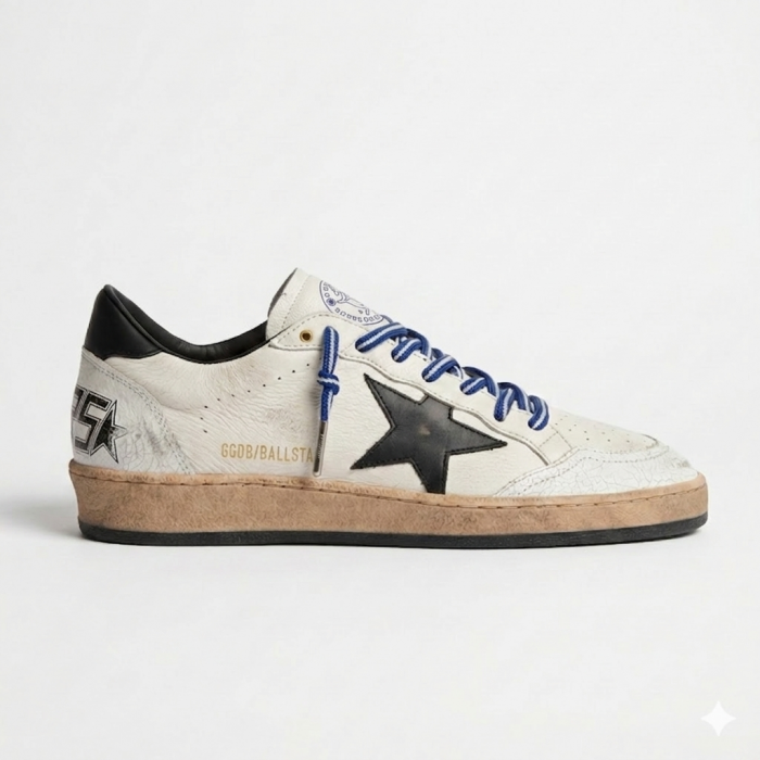 Дизайн Golden Goose Ball Star построен на классическом теннисном силуэте: низкий профиль, аккуратная форма и прочная резиновая подошва создают идеальный баланс между комфортом и стилем. Верх выполнен из качественной кожи с текстильными элементами, что делает кеды одновременно прочными, лёгкими и удобными для ежедневной носки.