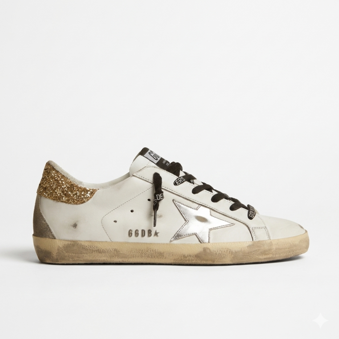 В интернет-магазине valenki4you.ru можно купить оригинальные кеды Golden Goose Super-Star Donna Bianche in Pelle Con Talloncino Glitter с гарантией подлинности. Эта модель станет отличным выбором для тех, кто ищет премиальную обувь Golden Goose с фирменным винтажным характером и яркой дизайнерской деталью.