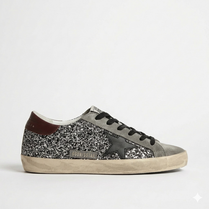 Golden Goose Super-Star Glitter Grey — яркая интерпретация легендарной модели Super-Star, в которой фирменный винтажный стиль бренда сочетается с эффектной блестящей отделкой. Эта модель создана для тех, кто хочет добавить в повседневный образ выразительный акцент и подчеркнуть индивидуальный стиль.