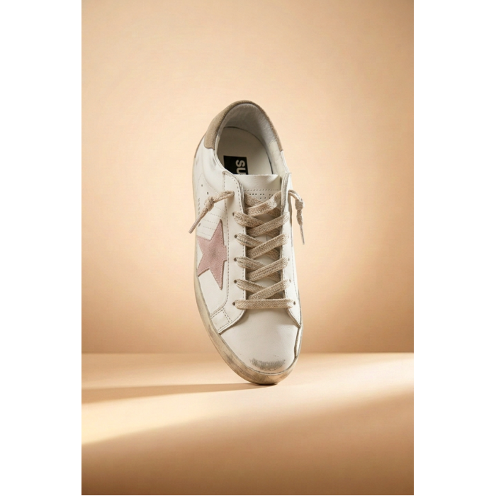 Главная особенность модели — декоративная Pink Star, расположенная на боковой панели. Розовая звезда создаёт мягкий цветовой контраст и добавляет образу свежести. Этот элемент делает Golden Goose Super-Star Peach особенно привлекательными для тех, кто ищет оригинальную модель с узнаваемой эстетикой бренда.