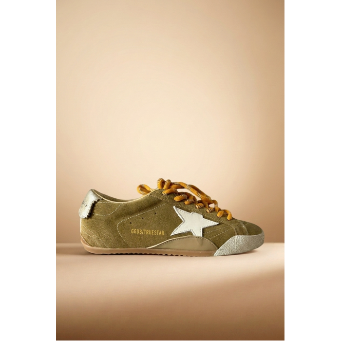 Golden Goose True-Star in Tobacco-Colored Suede With White Star and Platinum Heel Tab — стильная версия модели True-Star, в которой винтажная эстетика бренда сочетается с глубоким табачным оттенком замши и контрастными металлическими деталями. Эта модель выделяется сочетанием премиальных материалов и фирменного дизайна Golden Goose, который остаётся узнаваемым во всём мире.
