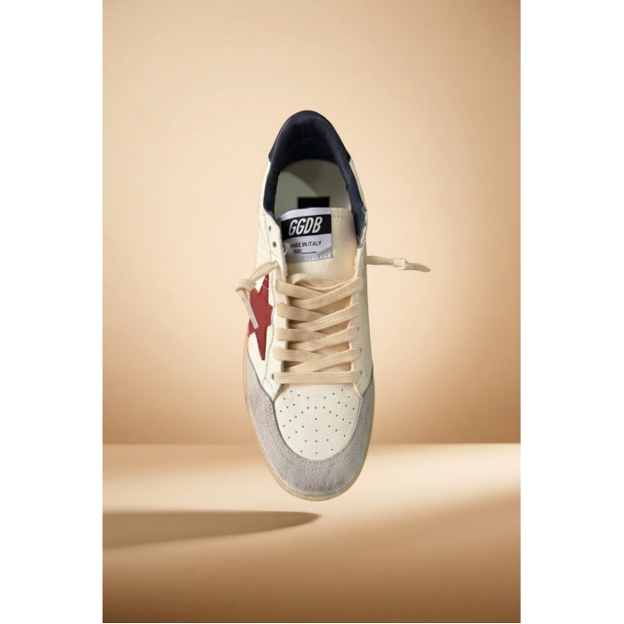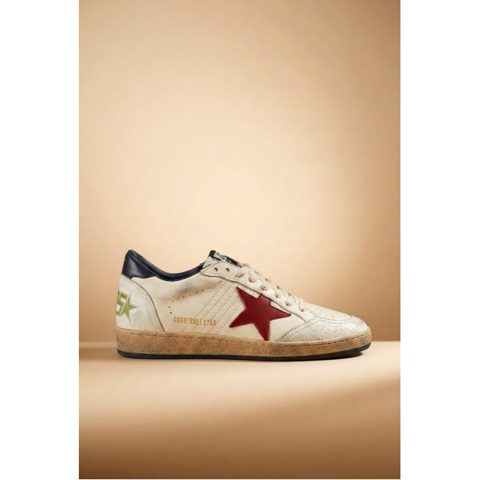 Как и все модели бренда, обувь проходит фирменную ручную обработку distressed, благодаря которой создаётся лёгкий винтажный эффект. Эта техника делает каждую пару кед Golden Goose Ball Star уникальной и придаёт обуви характер любимой пары с историей.