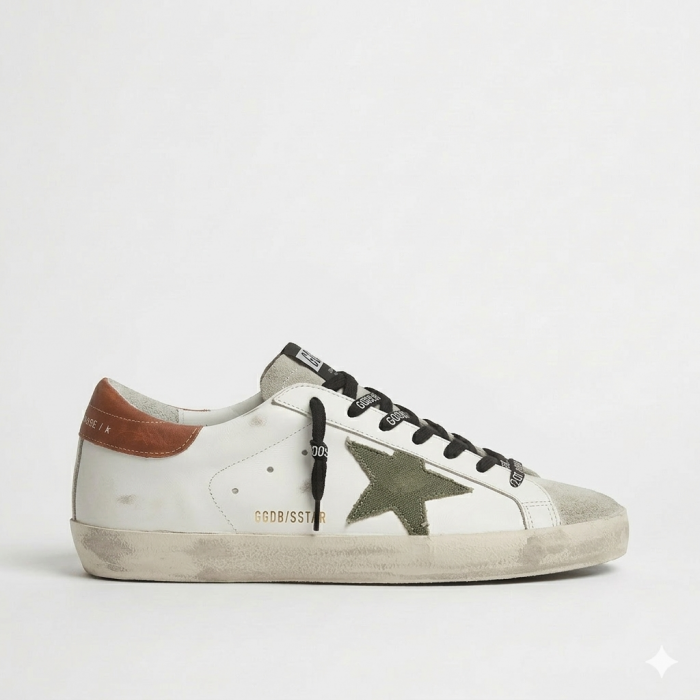 Golden Goose Super-Star With Olive Green Canvas Star
