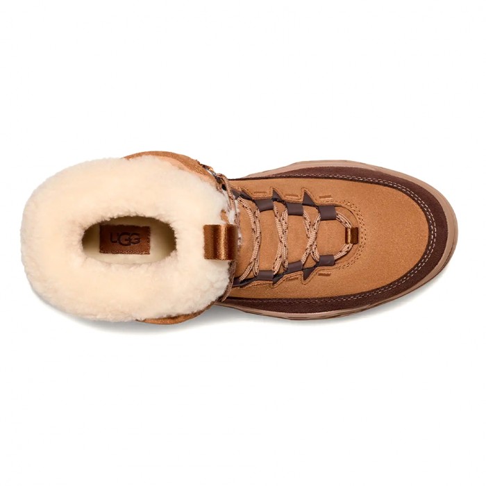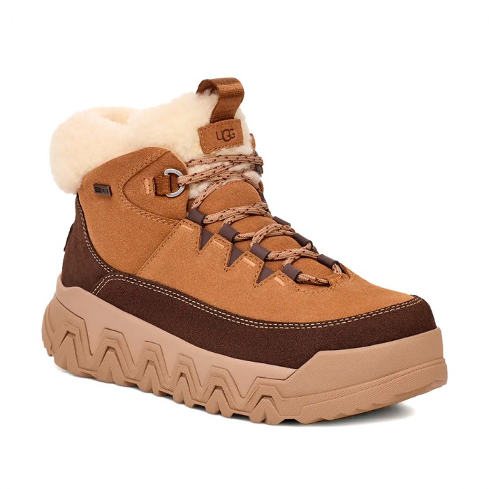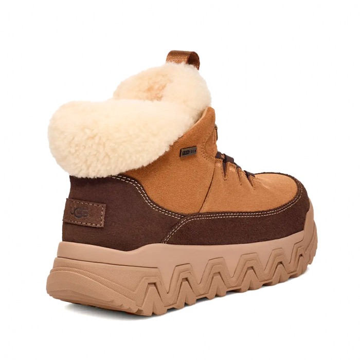 UGG TerreTrail Cozy Lace Chestnut — это идеальный выбор для зимнего гардероба, объединяющий премиальные материалы, защиту от влаги и комфорт на каждый день. Верх выполнен из водоотталкивающей замши с мембраной, а объемный воротник из текстурной овчины и флиса задаёт настроение уюта и долговечности. Подошва с рельефом обеспечивает необходимое сцепление в холодную или влажную погоду, а лёгкий EVA-базис снижает нагрузку при ходьбе.
