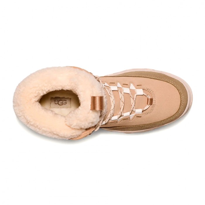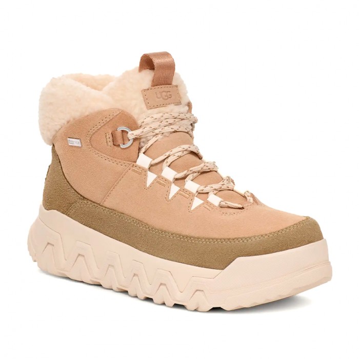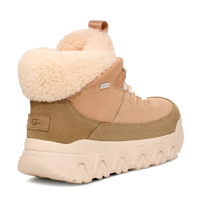 UGG TerreTrail Cozy Lace Sand — это идеальный выбор для зимнего гардероба, объединяющий премиальные материалы, защиту от влаги и комфорт на каждый день. Верх выполнен из водоотталкивающей замши с мембраной, а объемный воротник из текстурной овчины и флиса задаёт настроение уюта и долговечности. Подошва с рельефом обеспечивает необходимое сцепление в холодную или влажную погоду, а лёгкий EVA-базис снижает нагрузку при ходьбе.